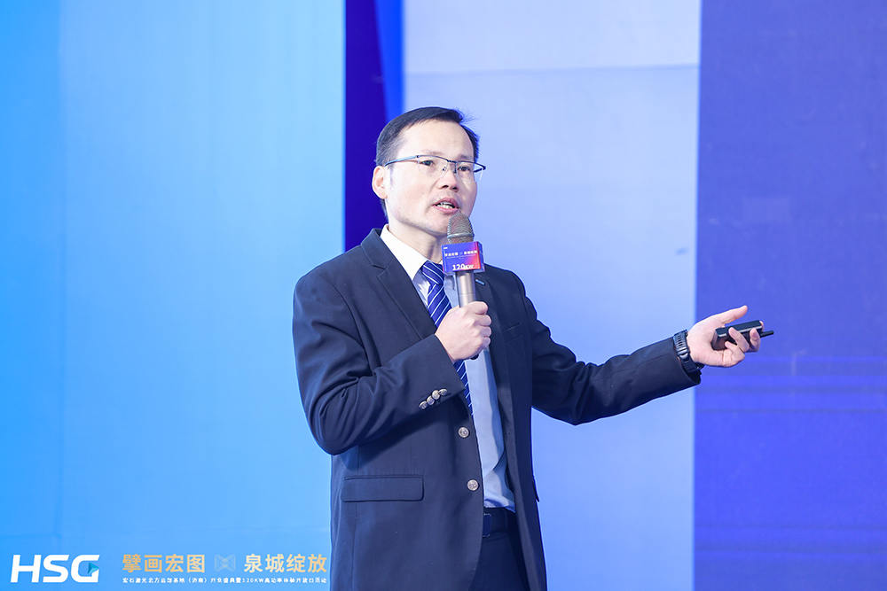 隨后,武漢銳科光纖激光技術股份有限公司副總經理李杰發表致辭,他表示:“銳科激光與宏石激光自合作以來,始終保持著緊密的戰略協作關系。雙方依托各自的技術與市場優勢,攜手攻克多項行業難題,成功推動了高功率激光器及相關設備的創新應用。宏石激光此次在濟南設立北方總部基地,并發布120kW超高功率激光切割機,突破了傳統激光切割的應用瓶頸,顯著提升了加工速度和切割厚度,尤其是在不銹鋼、碳鋼等中厚板材領域,是雙方戰略協作的又一豐碩成果,也標志著中國激光裝備制造領域邁向了更高水平?!?